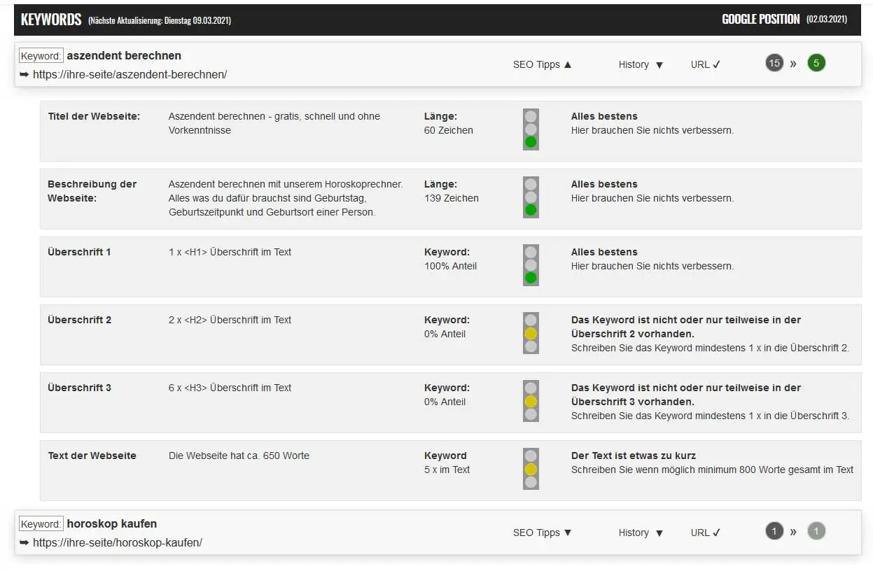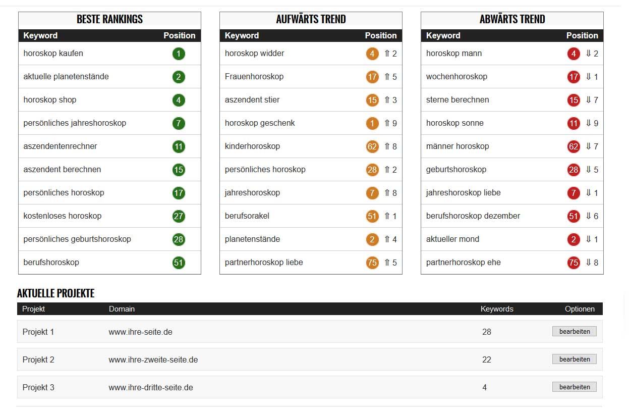 Um eigene Website Rankings zu optimieren, ist es wichtig, diese zu kennen und ständig zu überwachen. Mit rankpos Rank Checker, einem Teil unseres SEO Tools, behältst du den Überblick über deine Platzierungen bei Google. Diese Tools zeigen dir, auf welchem Platz deine Webseite für bestimmte Keywordkombinationen rankt. So kannst du schnell und einfach Änderungen vornehmen und deine Rankings dauerhaft optimieren.